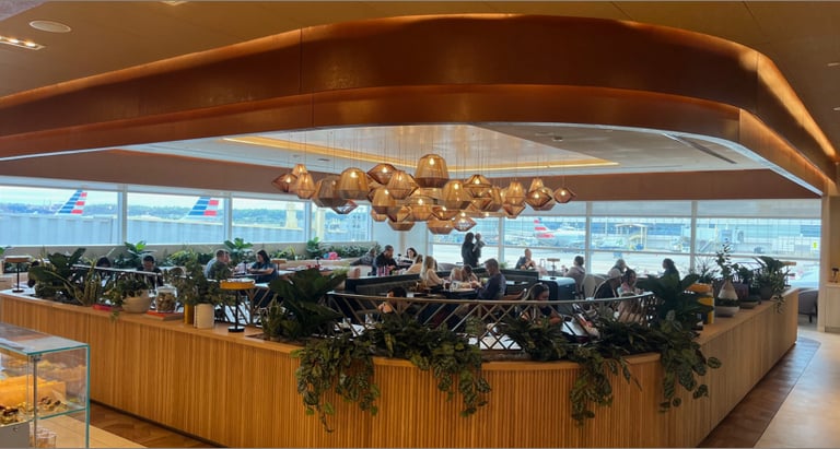 This lounge recently opened in DCA, and it is a terrific one. Reservations are recommended. I went without, and while there seemed to be available seating, I was informed that the lounge was full, but there was space available at the standing bar. Perfect. I paid the $45 adult guest fee for my daughter and in we went.